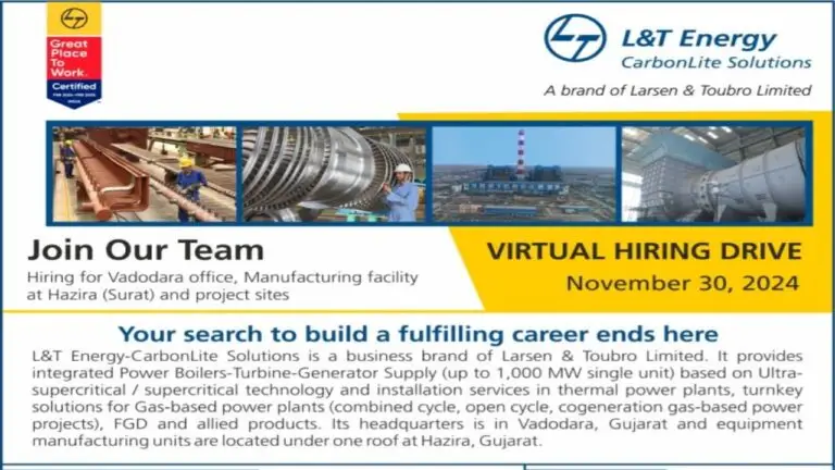 L&T Energy Virtual Interview 2024 | Draughtsman, HVAC Engineer, Maintenance Engineer, Welding Engineer & Others | ITI/Diploma/Degree | Last Date: 27 November 2024 |
