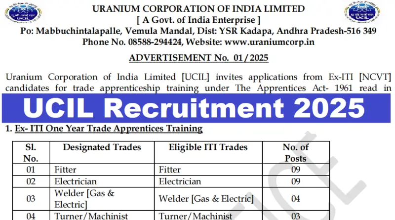 UCIL Recruitment 2025 | Freshers | Trade Apprentices | 32 Posts | Last Date : 12 February 2025 |
